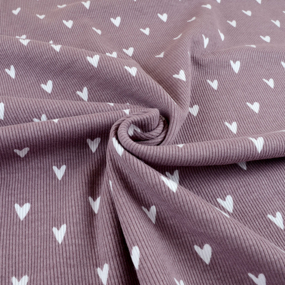 Fairtrade Bio Rib Jersey Hearts mauve