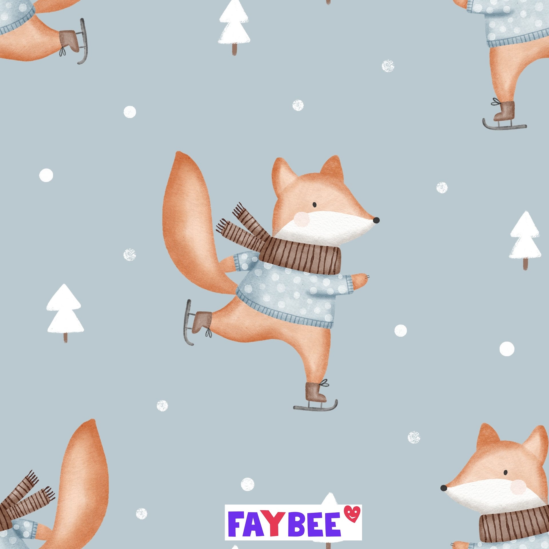 French Terry biologico Fairtrade Happy Fox Blue (GOTS)