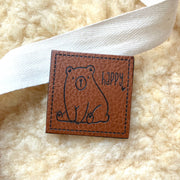 etichetta in finta pelle "Happy"
